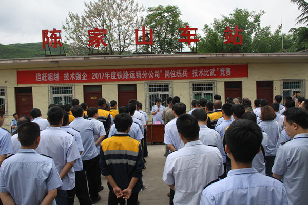 香山腳下崗位練兵展風(fēng)采,鐵道線上比拼技術(shù)逞英豪。5月18日,鐵運(yùn)分公司陳家山車站18面彩旗迎風(fēng)飄揚(yáng),41名鐵運(yùn)員工整裝列隊(duì),拉開了該分公司2017年“追趕超越、技術(shù)強(qiáng)企、崗位練兵、技術(shù)比武”競賽的帷幕。