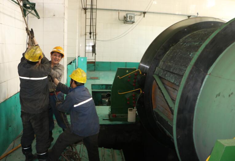 “更換后的鋼絲繩經(jīng)過測試,鉤頭牢固,絞車運(yùn)行可靠,可以投入使用……”近日,經(jīng)過10個小時的奮戰(zhàn)努力,崔家溝項目部副斜井絞車提升鋼絲繩及滾筒塑襯、天輪塑襯更換任務(wù)安全順利完成。