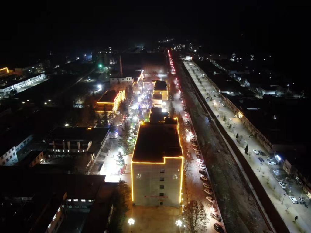 夜幕降臨時(shí),步入礦區(qū),張燈結(jié)彩、燈光璀璨,每一棵光鮮亮麗的樹上都像是結(jié)滿了剛成熟的柿子,閃閃發(fā)光,熠熠生輝的彩燈纏繞在樹枝上顯得格外的妖嬈嫵媚,寓意著點(diǎn)亮今天、照亮明天、迎接未來。