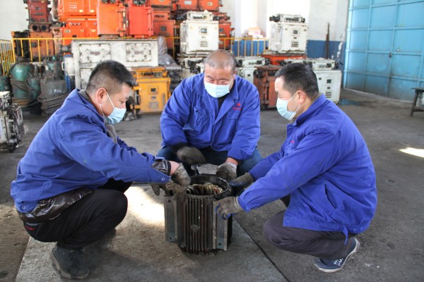 “團(tuán)隊(duì)技術(shù)好了才是真的好” 看圖紙、找原因、排故障,一個(gè)器件一個(gè)器件排查、一條線(xiàn)路一條線(xiàn)路梳理,微弱的燈光照在幾名礦工臉上,汗水一滴滴掉落下來(lái),最終經(jīng)過(guò)排查發(fā)現(xiàn)是一個(gè)電子元件松動(dòng),經(jīng)過(guò)復(fù)位之后故障成功排除。這是機(jī)電車(chē)間電工組組長(zhǎng)趙軍方帶領(lǐng)徒弟們排查檢修開(kāi)關(guān)故障的工作場(chǎng)景。 每次維修設(shè)備時(shí),趙軍方都要把徒弟們帶在身邊,讓他們?cè)谂挪殡[患中熟悉設(shè)備原理,在拆卸安裝中了解設(shè)備構(gòu)造,在解決問(wèn)題中總結(jié)提升,他始終認(rèn)為“一個(gè)人技術(shù)好了不算好,整個(gè)團(tuán)隊(duì)技術(shù)好了才是真的好?!?“趙哥,不但是我們的班長(zhǎng)、師傅,還是我們的‘百度百科’,沒(méi)有他不知道的問(wèn)題,也沒(méi)有他解決不了的故障,有他在,我們干活心里都有數(shù)了?!币宦毠じ吲d地告訴筆者。