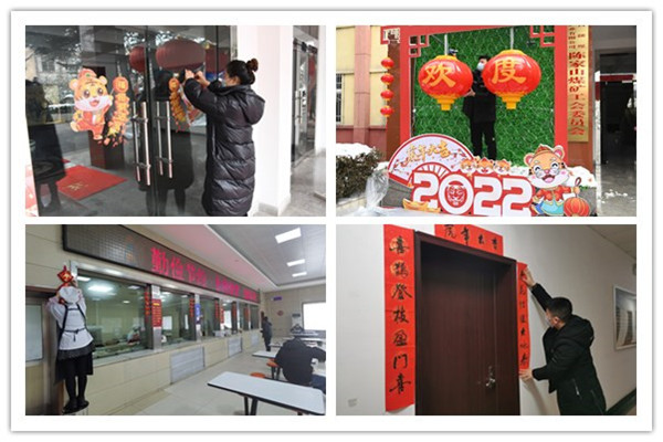 在辦公樓LED大屏播放著新年祝福語,進(jìn)門處兩側(cè)懸掛了“歡度春節(jié)”四個字樣的燈籠,張貼了虎年吉祥卡通圖案,辦公樓、信息樓、職工食堂和樹枝上的紅燈籠已經(jīng)全部懸掛到位,區(qū)隊(duì)樓職工們也正在欣喜地張貼礦黨政送來的祝福春聯(lián),礦區(qū)內(nèi)外、道路兩側(cè),華麗的燈光也已經(jīng)全部安裝到位,整個礦區(qū)被各種裝扮的分外靚麗,凝聚了礦黨政對全礦干部職工的美好祝福,也讓職工家屬感受到了濃濃的春意。