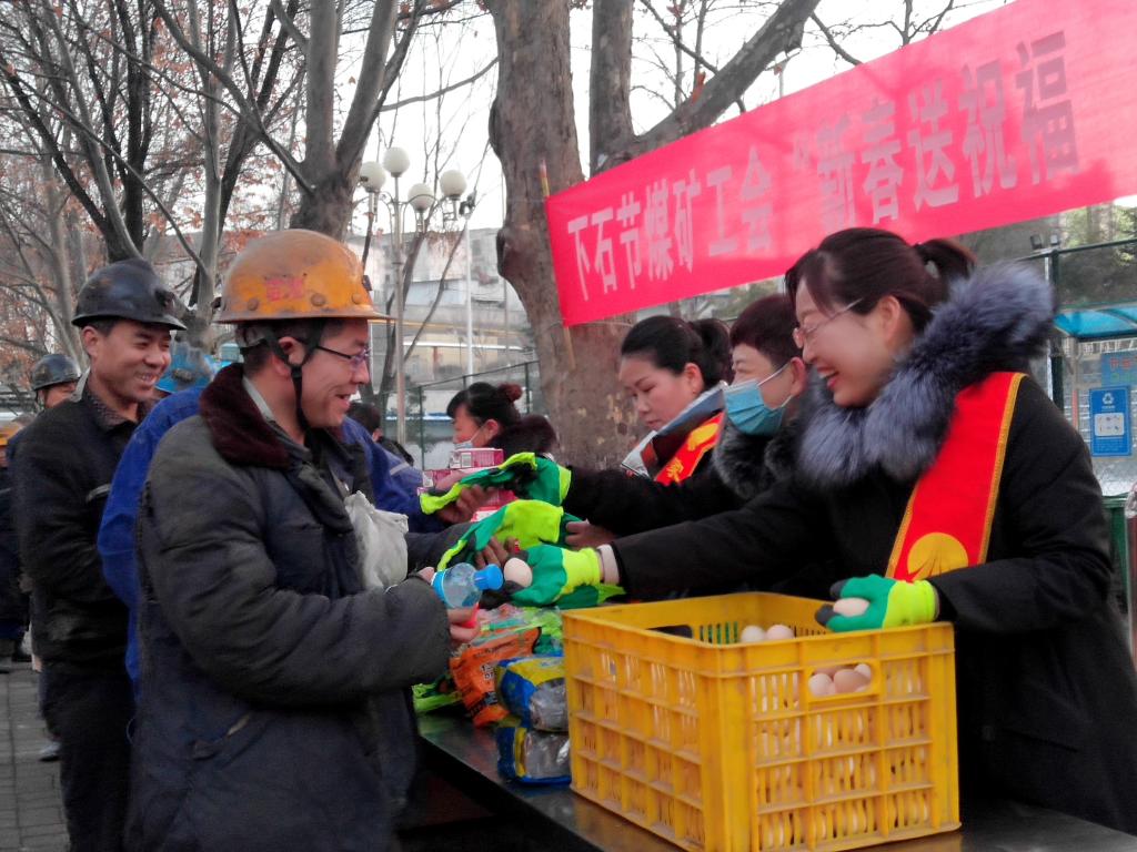 一大早,該礦工會就將提前準(zhǔn)備好的節(jié)日慰問品送到每位上下井職工手中,同時祝福礦工兄弟們新年快樂,幸福安康,叮囑他們安全上班,平安回家。一聲聲貼心的祝福,一句句深情的囑咐,讓職工倍感溫馨,大家紛紛表示一定用實(shí)際行動干好本職工作,為礦井的安全發(fā)展和家庭的幸福安康承擔(dān)起自己應(yīng)盡的責(zé)任。