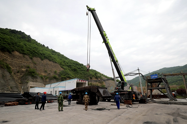 4月29日零點(diǎn)班,下石節(jié)煤礦首個(gè)下分層222工作面首臺(tái)液壓支架在絞車(chē)的牽引下,緩緩從二號(hào)副斜井井口駛出“平穩(wěn)著陸”,標(biāo)志著礦井下分層222工作面完成使命,大型綜采設(shè)備回收開(kāi)啟新征程。