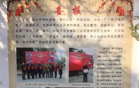 近日,一幅制作精美,反映“銅川工匠”參賽及獲獎選手的喜報(bào),引來眾多職工在機(jī)電分公司(廠)公示欄前駐足圍觀,再次引發(fā)職工和往來客戶對該單位“銅川工匠”參賽職工的關(guān)心關(guān)注,大家對參賽者的絕活技能贊不絕口,羨慕敬佩之情溢于言表。