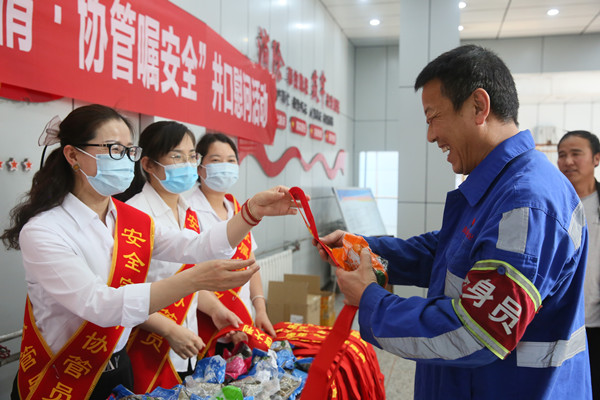 “李叔您好,剛升井啊,送您一條平安帶和一包安全蜜棕,希望你和家人端午節(jié)安康”