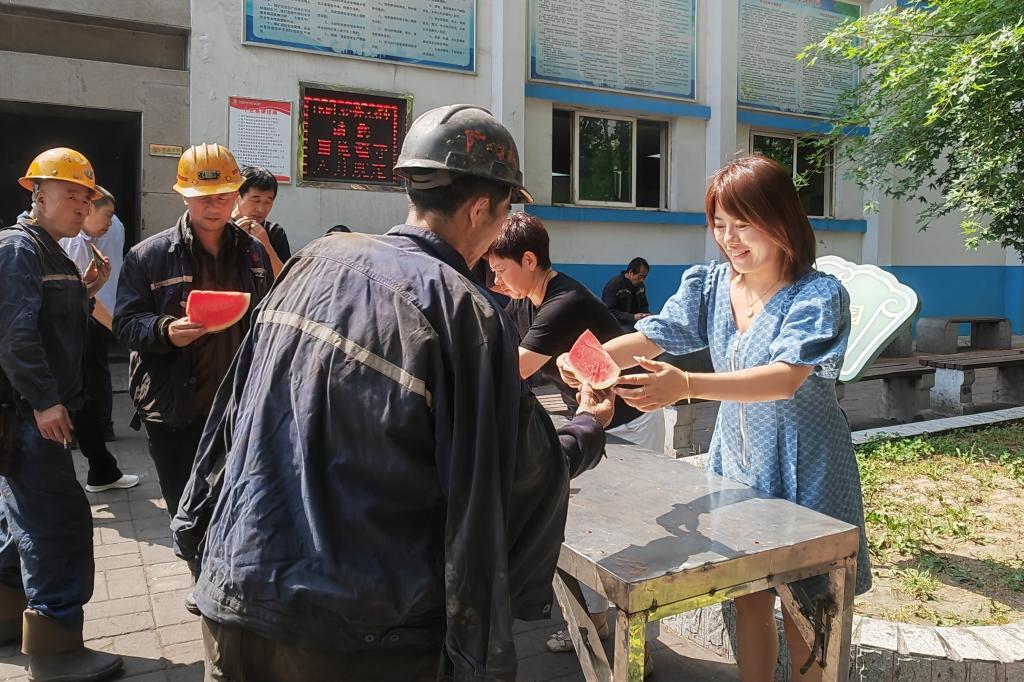 “他和我都是從河南滑縣貧困農(nóng)村走出來的,我倆結(jié)婚18年來,孩子上學(xué),他幾乎沒有接送過一次,一家人坐在一起吃頓飯機(jī)會(huì)都很少,他也很少能陪我買衣服。我埋怨他沒有浪漫風(fēng)雅,翻不起憐愛的浪花,抱怨他不關(guān)注我和孩子,覺得在他的眼里床比我和孩子都親。他從沒有在我和孩子面前說自己有多累,今天父親節(jié)礦工會(huì)組織井口見親人活動(dòng),看到他滿身的煤灰,我才真正認(rèn)識(shí)了他。他肩上的責(zé)任重,為了這個(gè)家,為了多攢點(diǎn)錢,他幾乎沒有休息過,我知道他工作累,我會(huì)支持他,做好他愛吃的飯菜,和孩子一起等他回家?!被顒?dòng)結(jié)束后,綜采隊(duì)寧現(xiàn)嶺的妻對(duì)我們說。