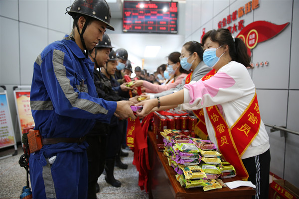 “叔叔祝您節(jié)日快樂,這是您的月餅請拿好”,在該礦井口信息站內(nèi),貼心的職工家屬和女工協(xié)管員們在礦工會的組織下,親手將一塊塊團圓月餅、一瓶瓶王老吉、一條條紅腰帶遞給上下井職工們的手中,叮囑其在工作中要注意安全,遵章作業(yè),祝愿其中秋佳節(jié)平安、幸福、快樂,一句句暖心的節(jié)日祝福,一聲聲溫馨的安全叮囑,使他們切身感受到了礦當(dāng)政的關(guān)懷之情,并表示一定會按章作業(yè),杜絕“三違”,鉚足干勁積極投身到井下安全生產(chǎn)和礦井的發(fā)展中來。