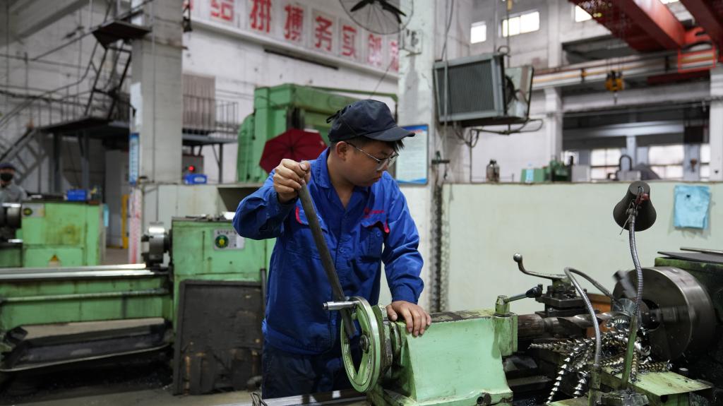 在該公司煤專車間里,不時(shí)傳來陣陣金屬碰撞的敲擊聲,工人小李正有條不紊調(diào)試車床,準(zhǔn)備加工皮帶機(jī)工件。他與車間其他工人師傅們一同在崗位上不停忙碌,保證生產(chǎn)任務(wù)如期完成,為礦井生產(chǎn)提供堅(jiān)強(qiáng)保障。