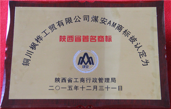 日前,從陜西省市工商管理部門獲悉,奧博集團楓樺公司的“煤安”牌商標,被陜西省工商行政管理局認定為“陜西省著名商標”。
