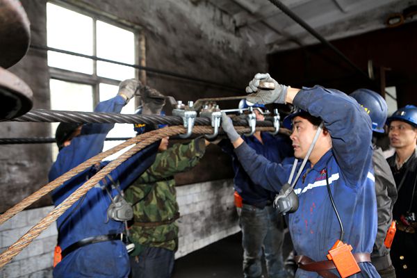 在大皮帶機(jī)房,該礦副總高金運(yùn)與機(jī)電運(yùn)轉(zhuǎn)隊(duì)主管郭思光等領(lǐng)導(dǎo)就更換大皮帶2#鋼絲繩頭任務(wù)進(jìn)行了詳細(xì)部署,認(rèn)真組織好人力物力,安排參戰(zhàn)的干部職工嚴(yán)格學(xué)習(xí)貫徹施工安全技術(shù)措施,認(rèn)真細(xì)致地做好更換前的各項(xiàng)準(zhǔn)備工作,并囑咐大家要時(shí)刻把安全工作放在第一位,細(xì)致把好每道工序,保質(zhì)保量完成工作任務(wù)。早上八點(diǎn)班大皮帶停運(yùn)后,更換大皮帶2#鋼絲繩繩頭戰(zhàn)斗全面打響。該礦分管領(lǐng)導(dǎo)現(xiàn)場(chǎng)跟班管理,把關(guān)安全質(zhì)量,區(qū)隊(duì)主管郭思光同志認(rèn)真指揮,帶領(lǐng)工長婿靜、班組李保成、馬建柱、雷文超、李鵬等四十余人全面投入到此項(xiàng)戰(zhàn)斗當(dāng)中。大家迎難而上,緊密配合,嚴(yán)格按照措施要求實(shí)施各項(xiàng)作業(yè),參與更換鋼絲繩繩頭的廣大干群協(xié)同作戰(zhàn),充分發(fā)揚(yáng)煤礦工人特別能吃苦、特別能戰(zhàn)斗、特別能奉獻(xiàn)的優(yōu)良作風(fēng),克服人員緊張、施工條件受限等不利因素,緊密配合,在安全的前提下,有條不紊的推進(jìn)工作進(jìn)度,經(jīng)過廣大干群近十幾個(gè)小時(shí)的緊張鏖戰(zhàn),此項(xiàng)工作已在安全的前提下圓滿完成,為礦井安全生產(chǎn)奠定了堅(jiān)實(shí)基礎(chǔ)。