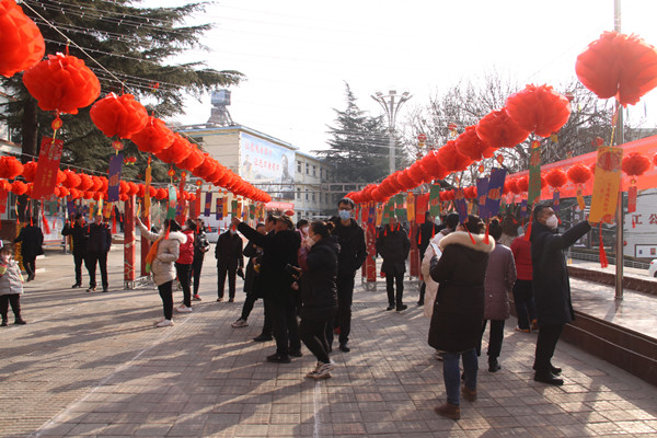 在農歷正月十五元宵佳節(jié)到來之際,東區(qū)礦井管理中心在辦公樓前舉辦“慶元宵猜燈謎”活動。燈謎現場200余條寫著燈謎謎面的彩條涵蓋了歷史人文地理等內容,吸引了眾多職工群眾或駐足沉思,或激情討論,整個活動現場充滿了歡笑、快樂、喜慶。
