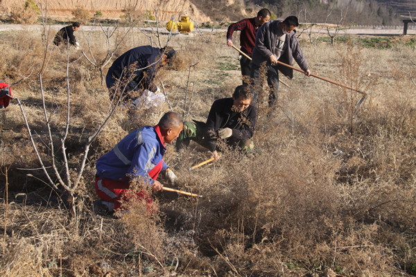 早上8點(diǎn)20分,該支部組織近20名黨員干部職工,帶著鋤頭、鐮刀等工具,大家或兩人一組,或三五成群,除草、撿垃圾各司其職、干勁十足,經(jīng)過一上午緊張的勞動,矸石山桃樹園的野草被清理干凈。