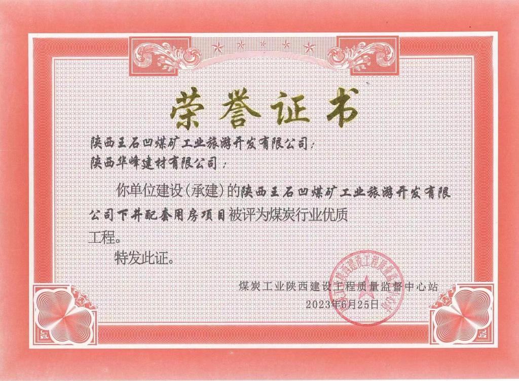 此次“煤炭行業(yè)優(yōu)質(zhì)工程”榮譽的獲得,是對華峰公司質(zhì)量管理能力和實力的褒獎和肯定,是該公司“創(chuàng)精品工程、樹華峰品牌”理念的生動體現(xiàn)。