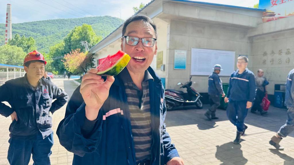 “師傅,辛苦了,吃塊西瓜解解暑?!被顒?dòng)中,剛剛結(jié)束井下工作的職工們一來(lái)到井口,就接到了工作人員準(zhǔn)備好的西瓜,并一再叮囑師傅們,天氣炎熱一定要提高自主保護(hù)意識(shí),防止中暑,安全生產(chǎn)。