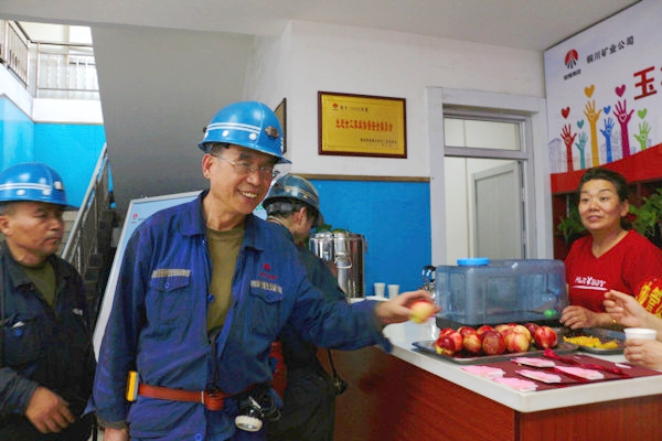 “西瓜甜、香瓜香、再來喝杯酸梅湯……”玉華礦剛剛升井走進候罐大廳的職工,從協(xié)管員手中接過一杯涼茶、捧著瓜果,消暑解乏。
