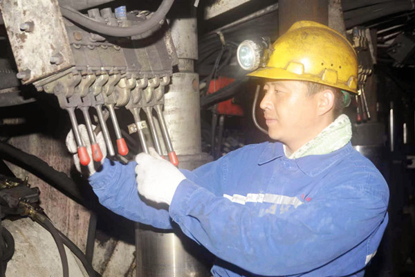 煤機故障的出現(xiàn)不分“上下班”,毛銀鎖常常剛端起飯碗或剛回家,搶修煤機的電話來了,他立刻進入工作狀態(tài),詢問煤機是在什么環(huán)境、什么狀態(tài)下出的故障,得到答復(fù)后,開始考慮故障會出現(xiàn)在哪個環(huán)節(jié)、有哪些維修方案可以采用、要帶哪些工具,到現(xiàn)場看到故障,成熟的維修方案就會立刻形成,為搶修贏得了時間,長此以往,他檢修綜采設(shè)備的技術(shù)水平也步步高升。