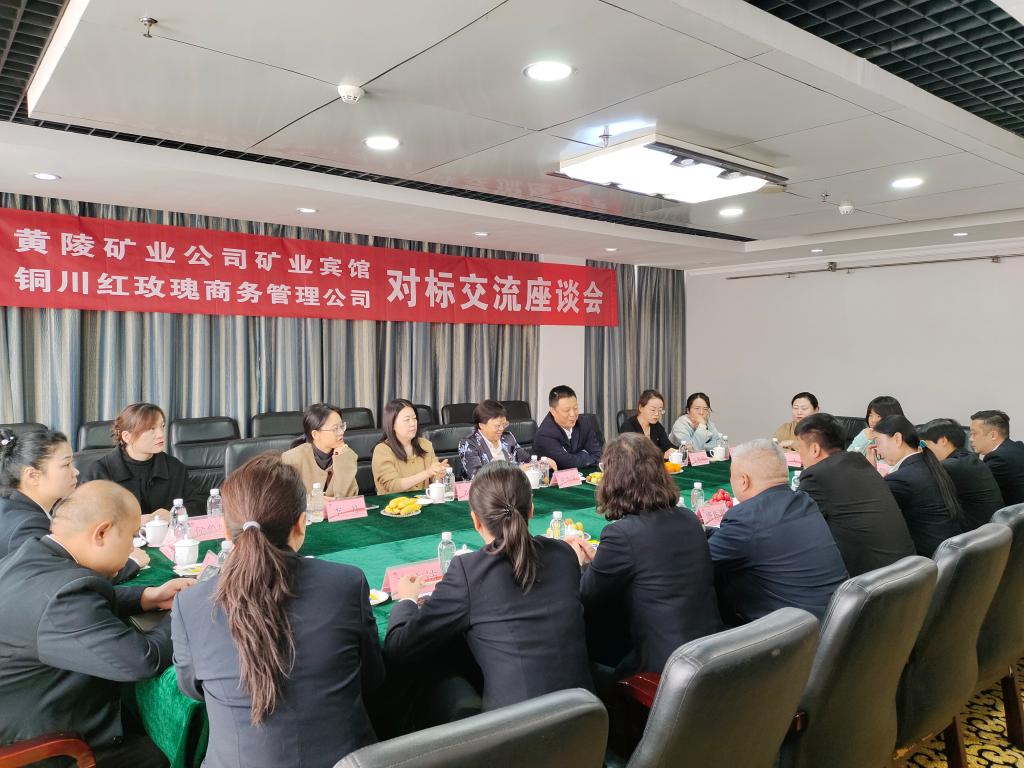 10月26日,黃陵礦業(yè)公司賓館黨支部書記張艷萍、副總經(jīng)理范建軍帶領(lǐng)對(duì)標(biāo)組到紅玫瑰商務(wù)管理公司開展對(duì)標(biāo)工作學(xué)習(xí)交流。