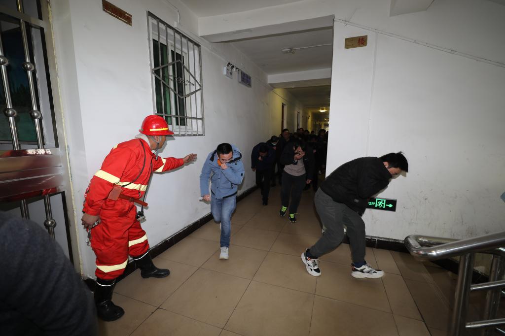 上午11時,隨著現(xiàn)場總指揮一聲令下,消防應(yīng)急演練正式拉開序幕。此次演練采用模擬事故現(xiàn)場實戰(zhàn)練兵的方式,模擬礦1#職工公寓內(nèi)223室意外起火,火勢迅速蔓延,直接威脅到樓內(nèi)其他職工的生命安全財產(chǎn)安全。值班人員發(fā)現(xiàn)火情后第一時間拉響撤離警報,快速向調(diào)度指揮中心匯報火災(zāi)險情相關(guān)信息的同時,積極組織開展自救互救工作,科學(xué)引導(dǎo)受災(zāi)區(qū)域職工有序撤離單身樓在安全地點(diǎn)待命。該礦緊急啟動地面火災(zāi)事故應(yīng)急救援預(yù)案,成立應(yīng)急救援指揮部,專業(yè)技術(shù)組、搶險救災(zāi)組、醫(yī)療救治組、治安保衛(wèi)組、后勤保障組、善后處理組、對外協(xié)調(diào)組快速響應(yīng),迅速到位,火速趕赴現(xiàn)場,有序開展撤退及救援工作。