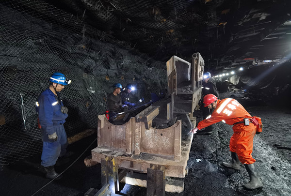 張保存是運輸區(qū)一名擁有20年駕齡的“老司機(jī)”,這次生產(chǎn)系統(tǒng)維護(hù)檢修的多線作業(yè),運力保障面臨的壓力也是前所未有。他掰著指頭細(xì)數(shù)每天礦車調(diào)配情況,南翼出渣要車80輛,煤倉供料從20輛開始迅猛增長,再加上回撤、檢修運輸,僅他的一個班次就轉(zhuǎn)運百余輛板車礦車。反饋車輛運返、流轉(zhuǎn)實時動態(tài),根據(jù)調(diào)度指令調(diào)配運力,“訂單式”按時按線輸送,建立中轉(zhuǎn)站、臨時車場和停靠點,加快循環(huán)轉(zhuǎn)運,掛車、摘銷、鏈車的動作行云流水,一車次一巡檢,步行就是平時的好幾倍。精神集中安全運行,精準(zhǔn)調(diào)配保障供應(yīng),千尺井下的運輸線,如同“高速公路”車流穿梭繁忙。