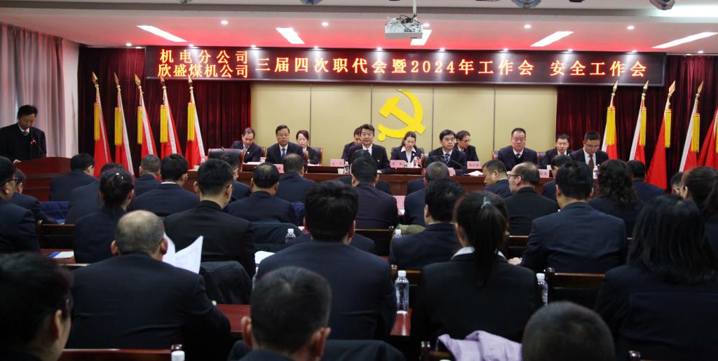新征程催人奮進,新使命引領(lǐng)擔(dān)當(dāng)。1月31日,機電分公司(欣盛煤機公司)三屆四次職代會暨2024年工作會、安全工作會在機關(guān)四樓會議室召開,全面貫徹落實陜煤集團工作會、銅川礦業(yè)“三會”部署要求,總結(jié)回顧2023年工作,科學(xué)分析企業(yè)發(fā)展面臨形勢,安排部署2024年各項工作任務(wù),動員廣大干部職工進一步統(tǒng)一思想堅定信心,團結(jié)一致向前看,凝心聚力謀發(fā)展,以高度的使命感責(zé)任感不折不扣抓好各項工作落實落地,奮力推動企業(yè)高質(zhì)量發(fā)展再上新臺階、再譜新篇章。該公司領(lǐng)導(dǎo)班子成員,機關(guān)部門、生產(chǎn)車間負(fù)責(zé)人及職代會職工代表參加了會議。