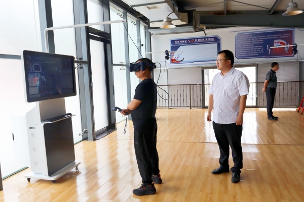 期間,學(xué)員們到該礦教培室體驗(yàn)了VR智能化礦山培訓(xùn)系統(tǒng)。