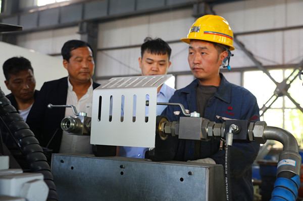 北風(fēng)井設(shè)備庫房,專家進(jìn)行實(shí)操現(xiàn)場授課,講解了設(shè)備操作要點(diǎn)、施工標(biāo)準(zhǔn),重點(diǎn)講授了故障分析、處理及保養(yǎng)知識?;咏虒W(xué),通過一邊演示,一邊職工上機(jī)實(shí)操,結(jié)合具體問題答疑解惑、相互印證,確保職工盡快盡早掌握新設(shè)備。