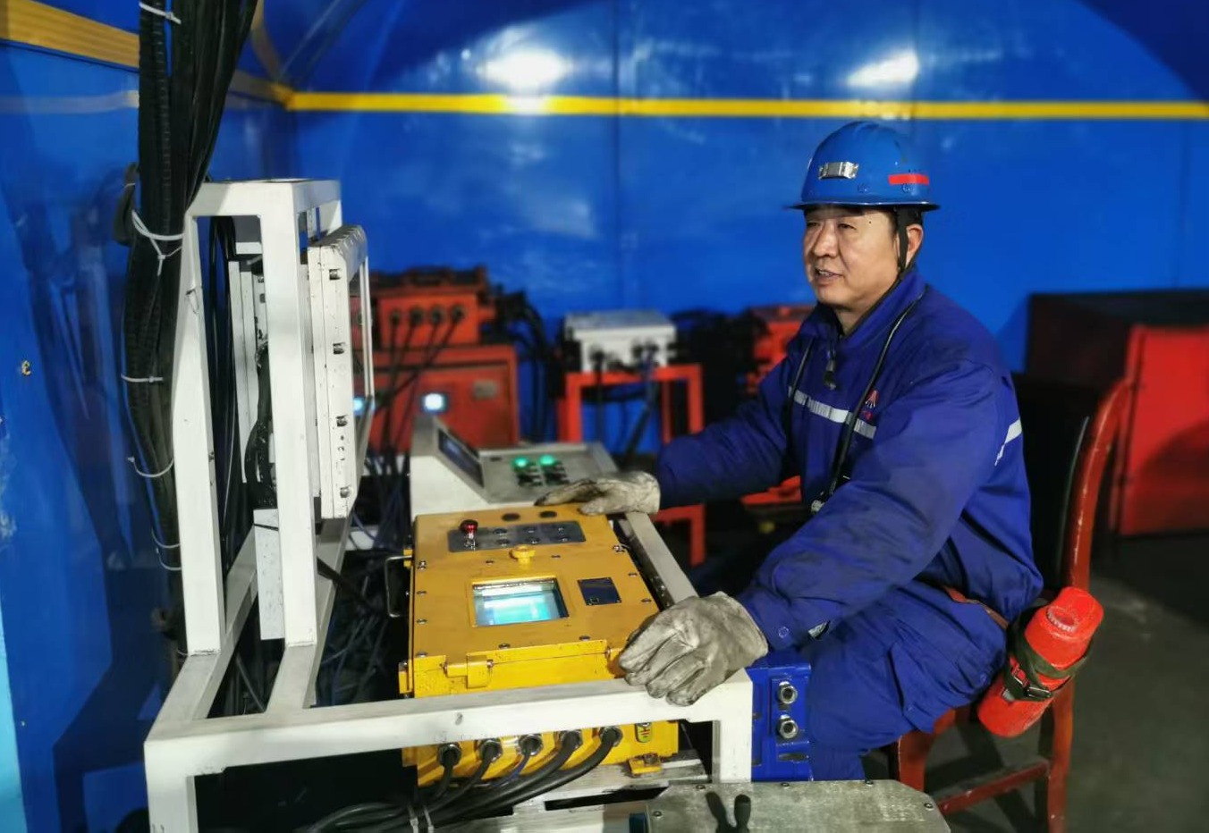 為了持續(xù)改善職工作業(yè)環(huán)境,有效提升放煤作業(yè)效率,該礦結(jié)合井下實際與需求,對集中煤倉放煤系統(tǒng)進行升級改造,積極選配安全性能高、適配度強的集中煤倉遠距離操控系統(tǒng),加裝顯示屏、操控臺和液壓系統(tǒng)籌設(shè)備,通過液壓傳動與智能控制技術(shù)相結(jié)合,實現(xiàn)了放煤量精準調(diào)節(jié)、作業(yè)流程自動啟停,將以往近距離的傳統(tǒng)手動放煤升級為遠程操控運行模式,不僅有效改善了職工的作業(yè)環(huán)境、降低了職工的勞動強度,而且大幅提升了工作效率,為礦井安全生產(chǎn)注入了“科技動能”。