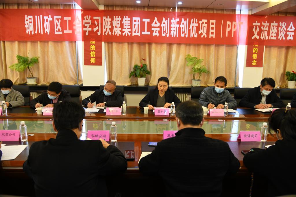 近日,銅川礦區(qū)工會(huì)在鐵運(yùn)分公司召開(kāi)了學(xué)習(xí)陜煤集團(tuán)工會(huì)創(chuàng)新創(chuàng)優(yōu)項(xiàng)目PPT(市區(qū))交流座談會(huì),鐵運(yùn)分公司、救護(hù)大隊(duì)、華遠(yuǎn)項(xiàng)目部、物資供應(yīng)分公司等13家市區(qū)單位的工會(huì)主席、副主席、女工主任參加了座談。