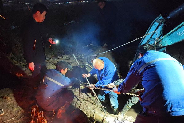搶修中,大家按照分工協(xié)同作戰(zhàn),職工清除了管路上的積雪,黨員運(yùn)用專業(yè)設(shè)備沿線細(xì)致排查管路變形破損情況,隨后踩入泥濘使用工具修復(fù)變形部位。