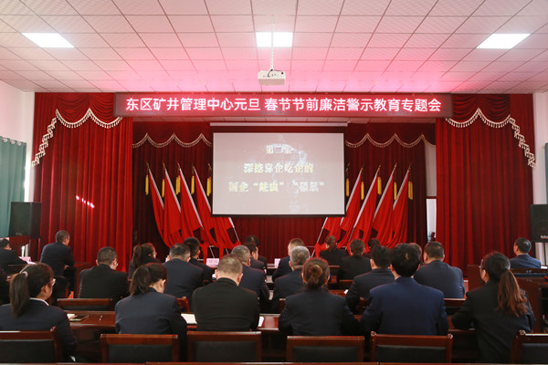 近日,東區(qū)礦井管理中心召開元旦春節(jié)節(jié)前廉潔警示教育專題會,教育黨員干部嚴守紀律“紅線”,不越廉潔“底線”,風(fēng)清氣正過佳節(jié)。