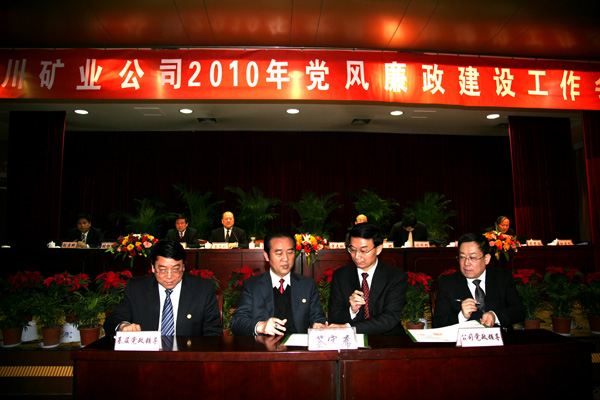 會(huì)上,張仿文同志宣讀了2008—2009年度紀(jì)檢監(jiān)察工作先進(jìn)集體和先進(jìn)個(gè)人表彰決定。公司領(lǐng)導(dǎo)為受表彰的先進(jìn)集體頒發(fā)了獎(jiǎng)牌。王石凹礦、下石節(jié)礦、奧博集團(tuán)做了經(jīng)驗(yàn)交流發(fā)言;玉華礦、一五三廠、徐家溝公司進(jìn)行了書面交流。公司黨政領(lǐng)導(dǎo)杜樹山、宋志剛與各單位黨政簽訂了2010年黨風(fēng)廉政建設(shè)目標(biāo)責(zé)任書。