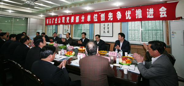 按照中央要求,這次創(chuàng)先爭優(yōu)活動,從2010年4月開始,到2012年7月結(jié)束,歷時兩年多,分兩個階段:第一階段,從2010年6月到2011年6月,著重圍繞迎接建黨90周年開展活動;第二階段,從2011年7月開始,著重圍繞迎接黨的十八大開展活動。銅川礦業(yè)公司在開展“深入開展創(chuàng)先爭優(yōu)活動動員大會”,“創(chuàng)先爭優(yōu)”點評活動結(jié)束后,為了扎實開展好今年的創(chuàng)先爭優(yōu)活動,2011年3月25日在下石節(jié)礦召開了部分單位創(chuàng)先爭優(yōu)活動推進(jìn)會,來自8對生產(chǎn)礦井、鐵運(yùn)公司、供應(yīng)處、史家河社區(qū)、桃園社區(qū)黨委(黨總支)書記、組織部長,公司黨委辦公室、組織部、宣傳部、機(jī)關(guān)工委、礦工報社負(fù)責(zé)人等30余人參加了會議。會議由公司組織部長王志峰主持。