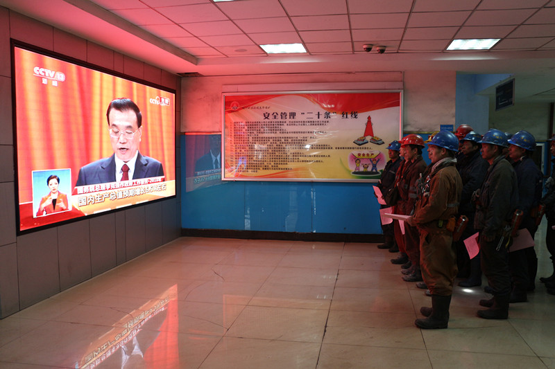 3月5日上午9點,玉華礦夜班剛剛升井的30多名職工圍攏在候罐大廳電子屏前,機關(guān)科室、基層區(qū)隊100多名人員,采掘區(qū)隊百余名管理人員和礦黨政班子成員分別在五樓會議室、調(diào)度會議室和區(qū)隊學(xué)習(xí)室內(nèi),目不轉(zhuǎn)睛的觀看李克強總理作政府工作報告的電視直播。當(dāng)日,十三屆全國人大一次會議開幕會在京開幕,礦井廣大干部職工特別關(guān)注兩會的召開,通過電視直播等多種方式了解更多與行業(yè)形勢和切身利益相關(guān)的新政策。