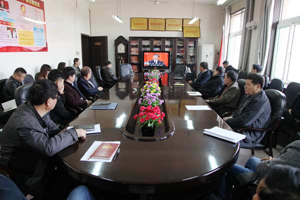 20日上午八點50整,該機關三樓會議室座無虛席,30多名礦黨政領導、機關科室留守人員,端坐靜聽,凝視著電視銀屏,仔細聆聽中華人民共和國主席習近平在第十三屆全國人民代表大會第一次閉幕會的講話。在收看現(xiàn)場直播的過程中,整個會議室秩序井然。每位同志都聚精會神,不少同志邊看邊記錄,不時為習近平主席的講話所打動,所鼓舞。