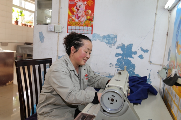 從職工交上工作服的那個(gè)點(diǎn)算起,必須在盡短的時(shí)間內(nèi),把臟衣服洗干凈,遇到破損的,還要縫補(bǔ)整齊。為了不耽誤職工正常上班,收來的衣服都要第一時(shí)間去洗,一件件交織著煤泥與汗水味的工作服,綁上標(biāo)識(shí)線,洗滌、脫水、烘干、疊檢、縫補(bǔ)、對號(hào)、上架擺放……每天都要重復(fù)著這十多道流程。一個(gè)班下來,最少要洗三、四機(jī)子衣服,手上經(jīng)過的衣服有三百多件,常常累的腰酸腿疼。