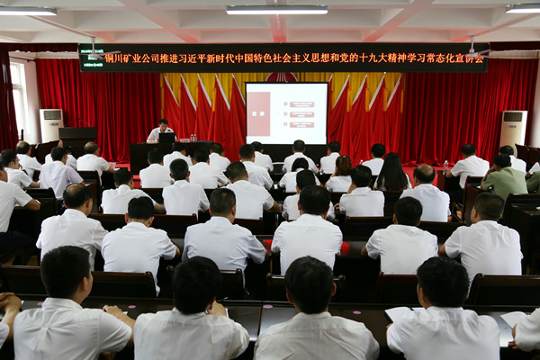 6月19日下午,公司推進(jìn)習(xí)近平新時(shí)代中國(guó)特色社會(huì)主義思想和黨的十九大精神學(xué)習(xí)常態(tài)化宣講會(huì)走進(jìn)陳家山煤礦,該礦黨政領(lǐng)導(dǎo)、副科級(jí)以上干部和機(jī)關(guān)部分職工共100余人參加了宣講會(huì)。