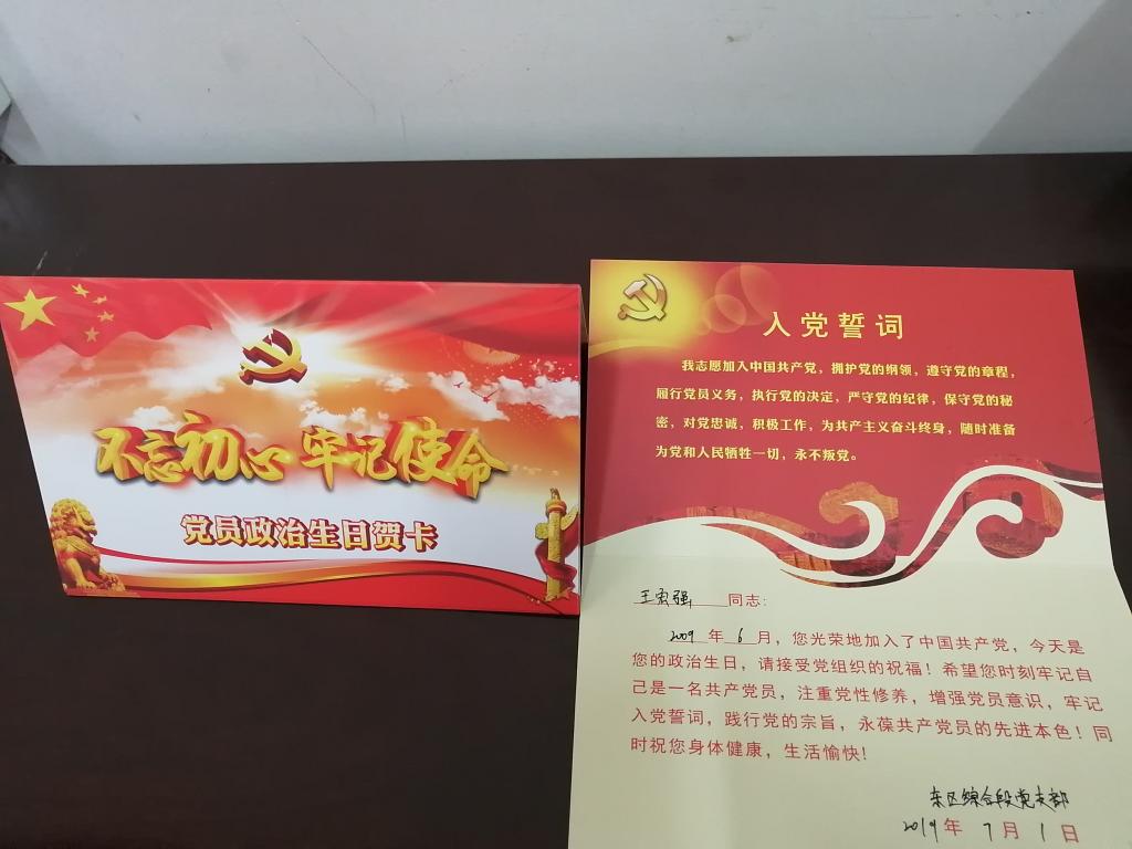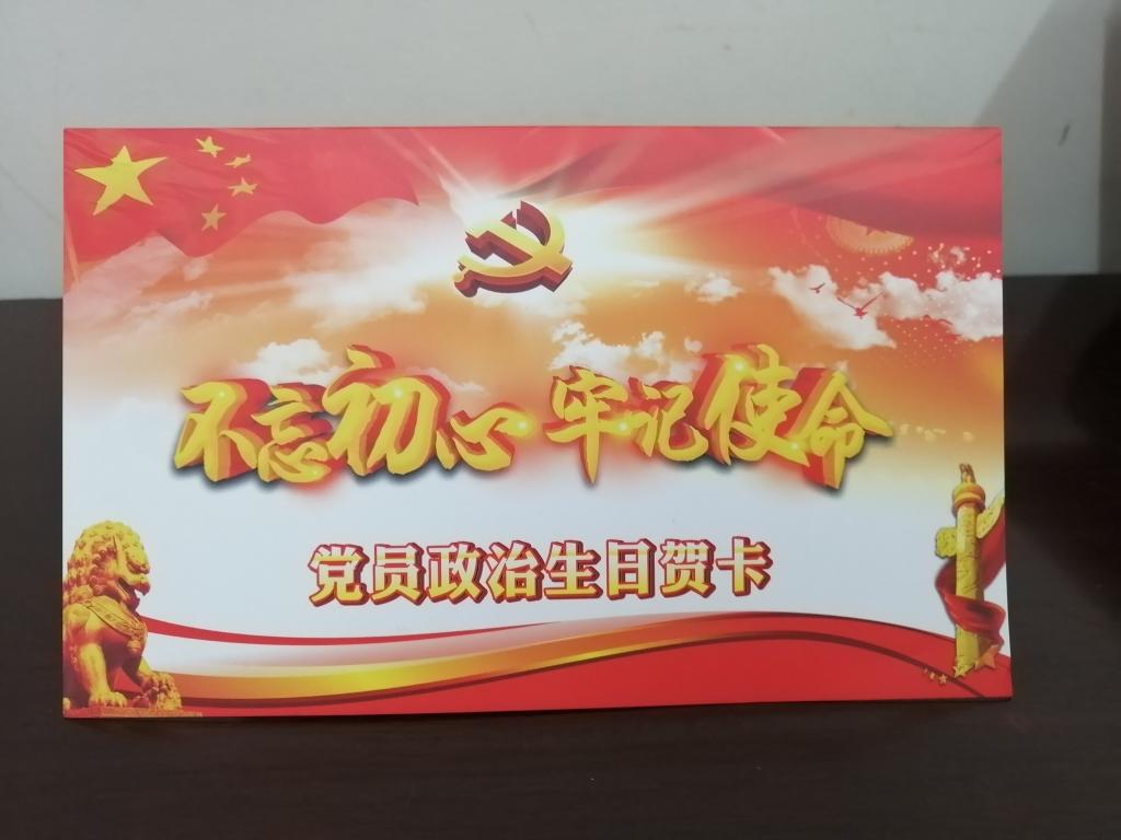 近日,鐵運分公司東區(qū)綜合段黨支部將一張張紅彤彤的黨員“政治生日”賀卡送到每個黨員手中。該支部通過給黨員贈送政治生日賀卡,進一步激發(fā)黨員的政治活力,提醒黨員時刻不忘初心,牢記使命。