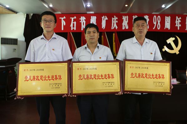 會(huì)上還宣讀了《下石節(jié)煤礦關(guān)于表彰2017-2018年度創(chuàng)先爭(zhēng)優(yōu)黨風(fēng)廉政建設(shè)工作先進(jìn)集體和先進(jìn)個(gè)人的決定》。在歡快的樂(lè)曲聲中,該礦領(lǐng)導(dǎo)分別為受到大會(huì)表彰的“四好”領(lǐng)導(dǎo)班子、“四強(qiáng)”黨支部、黨風(fēng)廉政建設(shè)先進(jìn)集體、優(yōu)秀黨務(wù)工作者、“四優(yōu)”共產(chǎn)黨員、黨風(fēng)廉政建設(shè)先進(jìn)個(gè)人、廉潔和諧家庭頒發(fā)了獎(jiǎng)牌和榮譽(yù)證書(shū),樹(shù)立實(shí)干標(biāo)桿,彰顯榜樣力量,在全礦掀起學(xué)先進(jìn)、趕先進(jìn)、爭(zhēng)當(dāng)先進(jìn)的新熱潮,為全面實(shí)現(xiàn)安全、穩(wěn)定、環(huán)保、廉潔“四零”目標(biāo)奠定良好基礎(chǔ)。