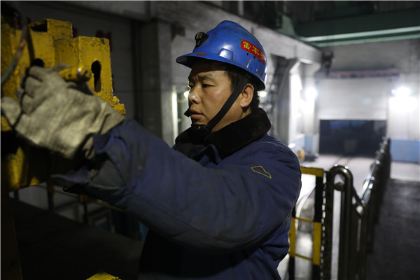 運輸區(qū)機車司機劉耀峰當(dāng)值夜班。此時礦區(qū)夜晚室外溫度已降至零下十幾度,呼出的熱氣瞬間就凝結(jié)了睫毛,機頭的燈光照亮軌道反射出清冷的光芒,他將升井的最后十幾輛礦車推放到車場?!澳檬謾C給家里拜個早年吧?”,還未撥通電話就因溫度過低而關(guān)機?!皼]事沒事,早就習(xí)慣了,地面的司機過年還可以放假,井下的司機年年都堅守崗位呢,他們更辛苦”。當(dāng)朝陽升起,劉耀峰拍拍機車:“老伙計,我回家過年了啊”。