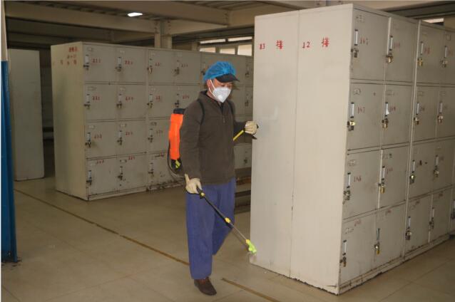 后勤服務(wù)中心的疫情防控工作主要包括項(xiàng)目部職工一、二號生活區(qū)人員出入監(jiān)測點(diǎn),“兩堂一舍”、機(jī)關(guān)辦公樓、聯(lián)合辦公區(qū)、信息站、副絞房、礦燈房等區(qū)域的每天兩次打藥消毒。各疫情監(jiān)測點(diǎn)對返礦職工的詳細(xì)信息進(jìn)行登記,逐個(gè)詢問返礦職工春節(jié)期間的活動(dòng)軌跡,測量體溫正常后,辦理了出入證,并對宿舍進(jìn)行消毒。