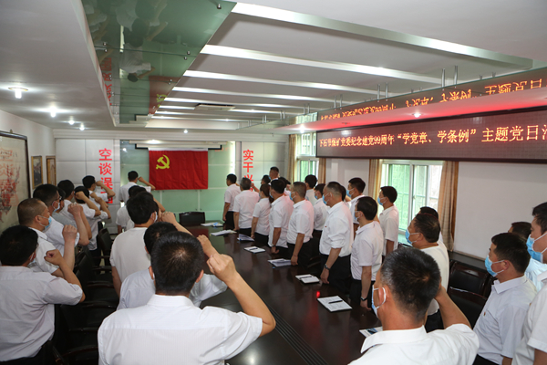 在中國共產(chǎn)黨成立99周年到來之際,下石節(jié)煤礦黨委扎實開展紀念建黨99周年“學黨章、學條例”主題黨日活動,重溫入黨誓詞,學好黨紀條規(guī),過好“政治生日”,以紅色黨心映初心。