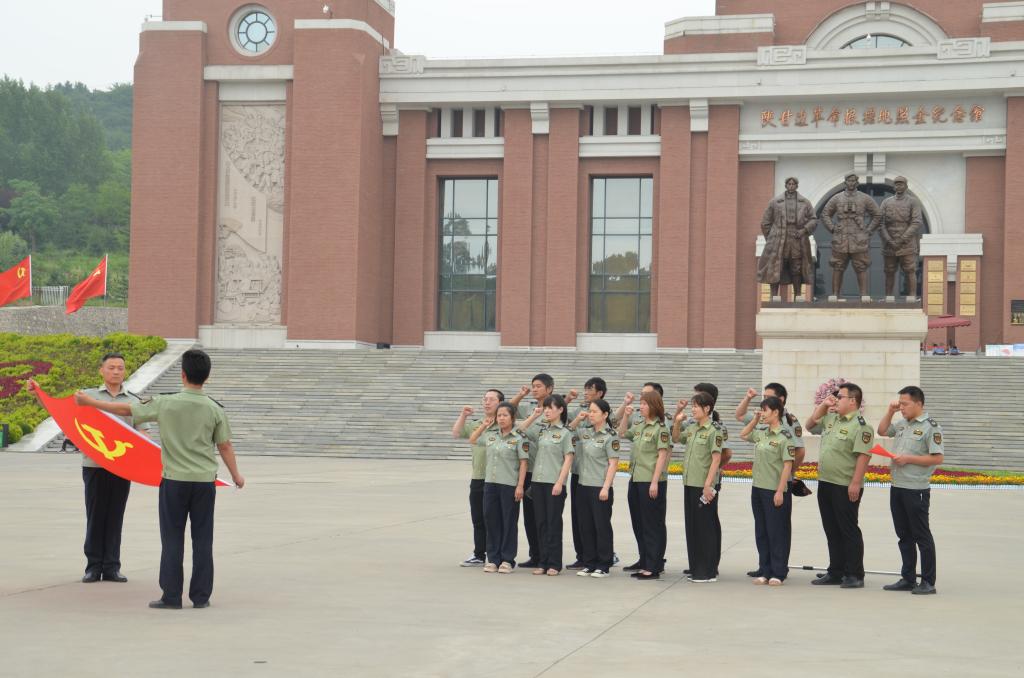 下午,大家來到陜甘邊革命根據(jù)地照金紀(jì)念館,這里是是1933年劉志丹、謝子長、習(xí)仲勛等老一輩無產(chǎn)階級革命家在西北地區(qū)創(chuàng)立的第一個山區(qū)革命根據(jù)地,在中國革命歷史上具有重要地位。參觀前,在紀(jì)念館前的革命先驅(qū)雕像下,面對黨旗,全體黨員重溫入黨誓詞,不忘初心,牢記使命。