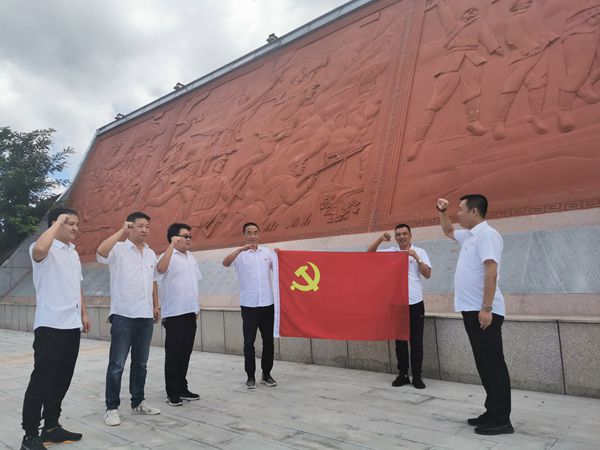 軍臺(tái)嶺位于銅川市王益區(qū)王益鄉(xiāng)店子坡村東南部,距銅川老市區(qū)10公里。1937年至1949年,賀龍、彭德懷、張宗遜等老一輩無(wú)產(chǎn)階級(jí)革命家在這里發(fā)生過(guò)三次戰(zhàn)斗,為徹底解放銅川奠定了堅(jiān)實(shí)的基礎(chǔ)。在莊重的軍臺(tái)嶺革命紀(jì)念碑前,大家莊嚴(yán)舉起右手,面對(duì)鮮紅的黨旗,重溫入黨誓詞,不忘入黨初心。大家觀看著一幅幅浮雕,聆聽(tīng)著一個(gè)個(gè)故事,深刻體會(huì)到老一輩革命家為了革命事業(yè)艱苦奮斗無(wú)怨無(wú)悔的精神,鼓舞著在場(chǎng)每一個(gè)人。