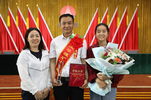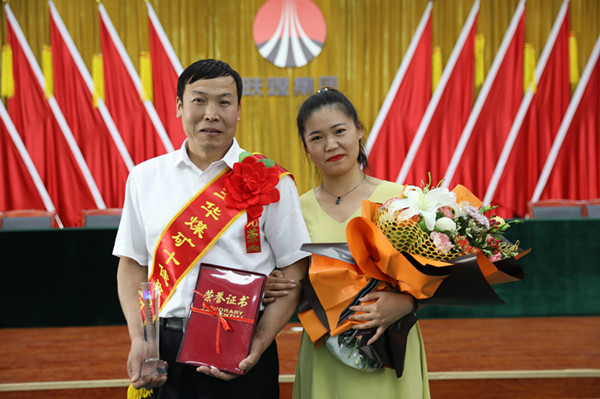 “他吃苦耐勞、憨厚樸實,扎根掘進一線30年,奉獻青春無怨無悔。他身先士卒、推崇創(chuàng)新,擔任班長8年來,帶領(lǐng)班組屢創(chuàng)進尺新佳績,他就是礦區(qū)安全高效掘進標兵、綜掘二隊生產(chǎn)三班班長劉戰(zhàn)文”。8月27日,全礦205名班組長迎來了屬于自己的節(jié)日——玉華煤礦第七屆“班組長節(jié)”。當頒獎詞宣讀完畢,劉戰(zhàn)文和女兒劉宵手捧獎牌與鮮花,登上2018-2019年度“十佳班組長”表彰會的舞臺,臺下瞬時報以熱烈掌聲向身處安全生產(chǎn)前沿的最可愛可敬的班組長致以節(jié)日的問候和誠摯的敬意。