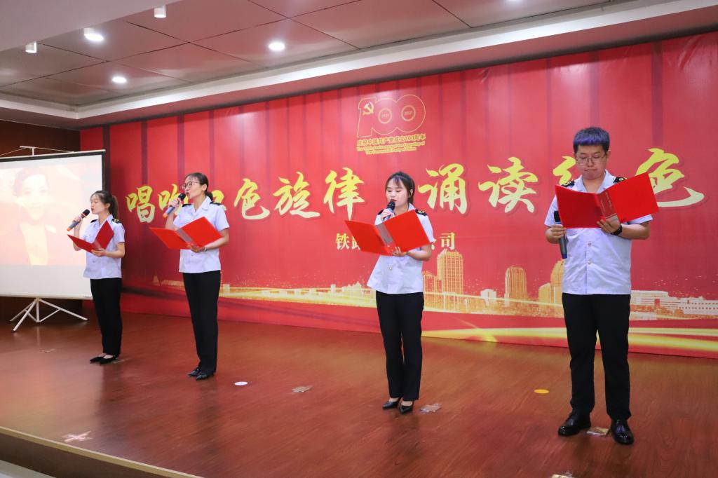 為慶祝中國(guó)共產(chǎn)黨成立100周年,扎實(shí)推進(jìn)黨史學(xué)習(xí)教育,近日,鐵運(yùn)分公司“唱響紅色旋律 誦讀紅色經(jīng)典”活動(dòng)精彩上演,60余名黨員干部齊聚一堂,誦經(jīng)典、唱紅歌、聽分享,唱響堅(jiān)定理想信念主旋律,唱響踐行初心使命主旋律,誦出永葆黨的生機(jī)活力主旋律,向黨的百年華誕獻(xiàn)禮。