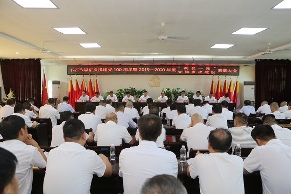 6月30日下午,下石節(jié)礦在機關(guān)四樓會議室召開慶祝建黨100周年暨“兩優(yōu)一先”黨風(fēng)廉政建設(shè)表彰會。表彰兩年來涌現(xiàn)出來的先進集體和先進個人,緬懷黨的光輝歷史,謳歌黨的豐功偉績,以實干興業(yè)、砥礪奮進新姿態(tài)喜迎黨的百年華誕。該礦黨政領(lǐng)導(dǎo),受表彰先進集體和個人代表,相關(guān)部門負(fù)責(zé)人,基層單位主要領(lǐng)導(dǎo),納新黨員共計百余人參加了會議。