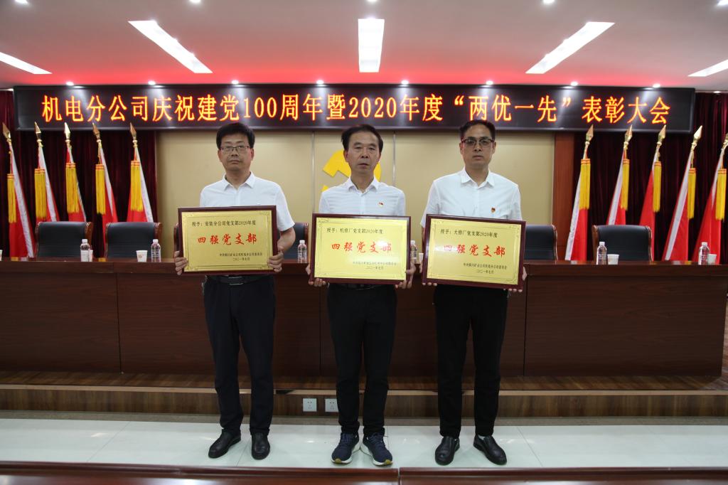 百年征程波瀾壯闊,百年初心歷久彌堅。6月30日,在中國共產(chǎn)黨成立100周年之際,機(jī)電分公司在該公司機(jī)關(guān)四樓會議室召開慶祝建黨100周年暨“兩優(yōu)一先”表彰大會,表彰一年來在公司黨建工作中涌現(xiàn)出的優(yōu)秀黨務(wù)工作者、優(yōu)秀共產(chǎn)黨員和先進(jìn)基層黨支部,激勵動員全體黨員干部職工從黨的百年奮斗歷程中汲取智慧和前進(jìn)力量,奮力譜寫公司高質(zhì)量發(fā)展新篇章。該公司領(lǐng)導(dǎo)班子成員,機(jī)關(guān)各部門和各車間負(fù)責(zé)人以及受表彰的先進(jìn)集體和黨員代表共計60余人參加了會議,共同迎接黨的百歲生日。