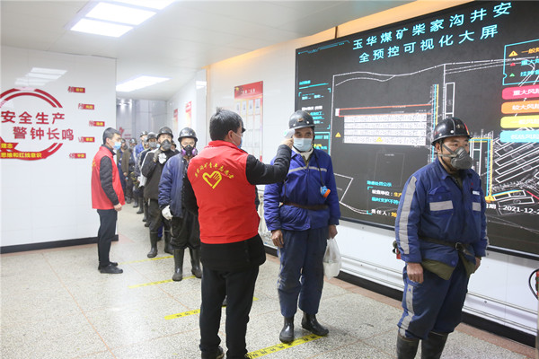 “你好,歡迎來到柴家溝井,您的體溫是36.5°體溫正常,行程碼顯示未曾離開過銅川市,請(qǐng)?jiān)谟涗洷旧献龊梅酪咝畔⒌怯洝保摰V黨員志愿者在礦黨委的號(hào)召下,合理調(diào)整工作時(shí)間,放下手里工作,在礦大門口,與醫(yī)護(hù)人員和保安一同嚴(yán)查外來人員有效核酸證明、盤查行蹤軌跡,體溫測(cè)量等防疫工作,嚴(yán)把進(jìn)礦防疫第一關(guān),讓鮮紅黨旗在礦區(qū)內(nèi)高高飄揚(yáng)。 “你好,你的體溫是36.3°,體溫正常,祝您工作愉快”,在機(jī)關(guān)辦公樓前,黨員志愿者利用職工上下班時(shí)間,與醫(yī)護(hù)人員和保安一同對(duì)上下班的職工掃行程碼和測(cè)量體溫,最大限度地保證上下班職工身體健康和生命安全。