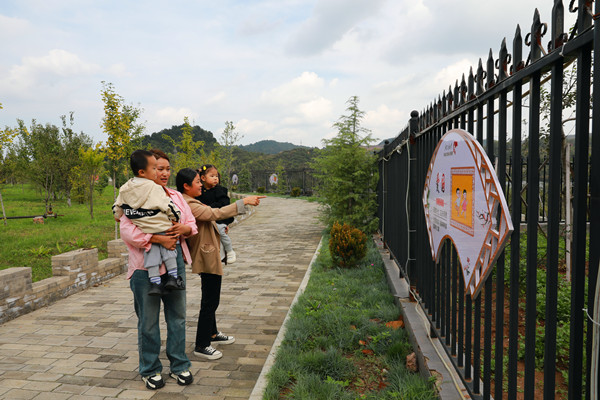 “媽媽,這兩個字念愛國對嗎?”沿著花園小徑一路向前,12塊造型精美的牌板吸引職工家屬駐足觀看,成為礦區(qū)培育和踐行社會主義核心價值觀,增進愛國愛黨情感的教育陣地。