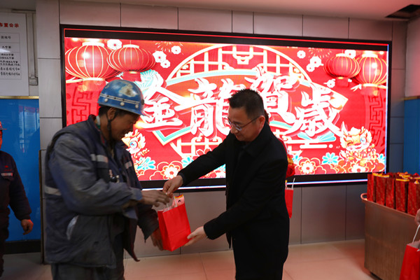 當(dāng)日一大早,該礦領(lǐng)導(dǎo)班子來到火紅一片“溢滿年味”的候罐大廳,參加“慶新春送祝福囑安全井口慰問”活動,為開工第一天升、入井的職工送上祝福,送來牛奶、面包、雞蛋等“營養(yǎng)套餐”,大家一一握手互致問候,礦黨政說“大家辛苦啦,感謝你們安全站好頭班崗,生產(chǎn)開好頭起好步”,叮囑入井職工牢記安全第一,展現(xiàn)新春新氣象新?lián)?dāng)。